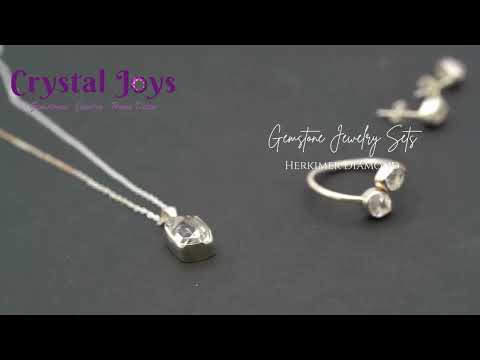 This brilliant Herkimer Diamond Rough sterling silver Jewelry Set includes an adjustable ring, necklace, and earrings, all made of sterling silver and featuring rough-cut, polished Herkimer Diamond stones.  Herkimer Diamonds are a type of quartz crystal found in Herkimer County, New York, USA, and are known for their exceptional clarity and natural double termination (points) on both ends. They are not actually diamonds but are called so due to their diamond-like appearance and exceptional clarity.