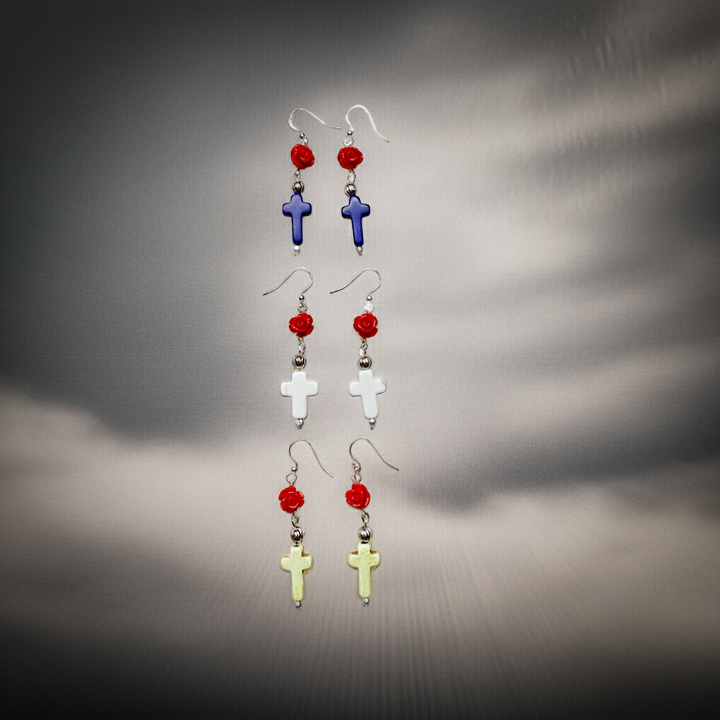Add a spooky-chic touch to your style with these Halloween Theme Earrings – Artisan Made. Crafted with silver-plated brass components and natural howlite accents, these earrings feature a playful mix of skulls, crosses, roses, and Czech glass beads—all combining for the perfect seasonal statement.