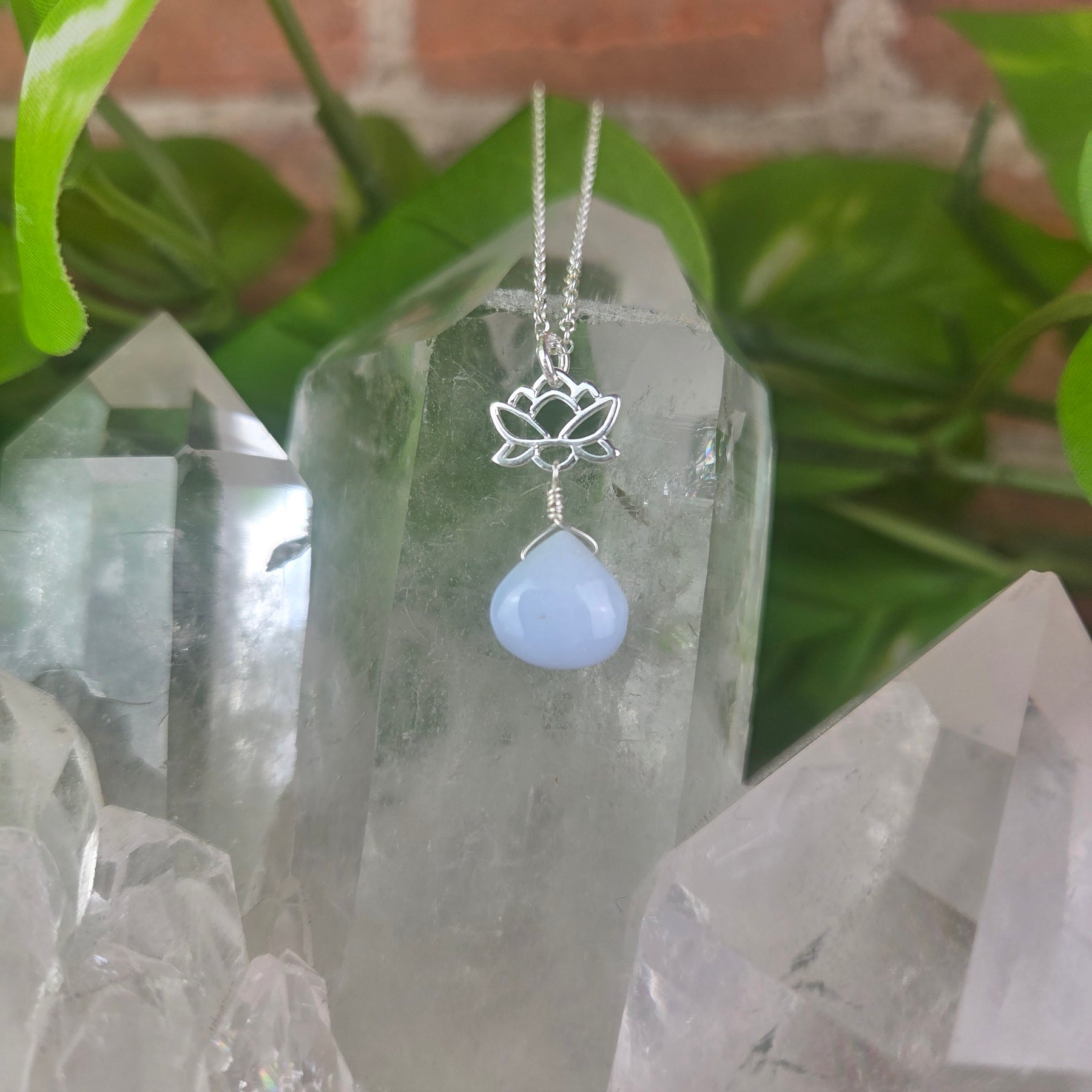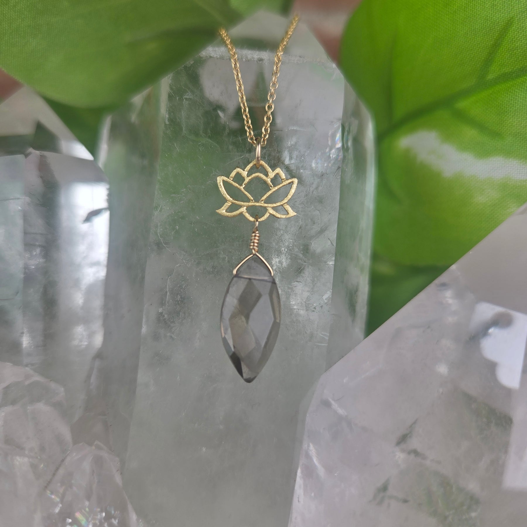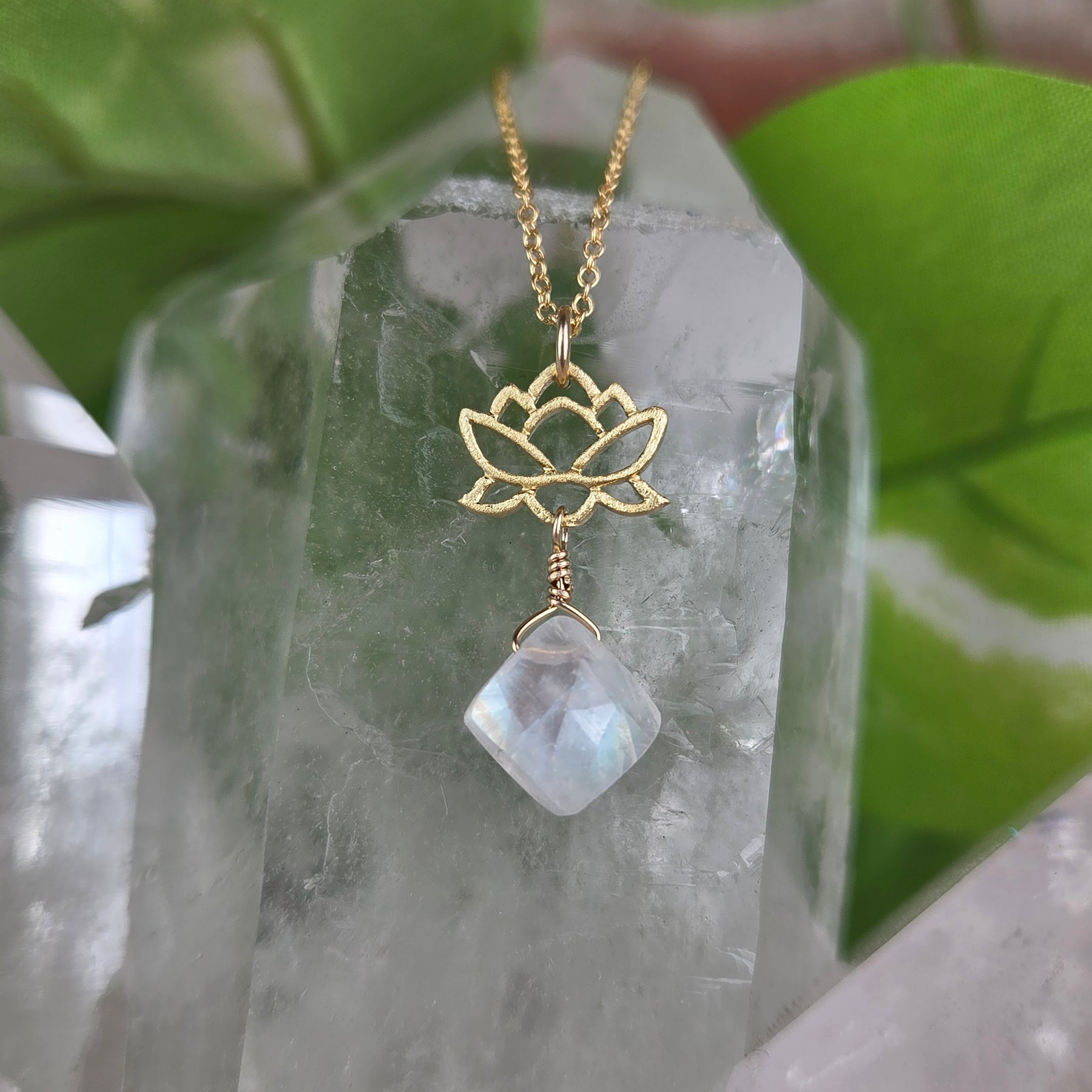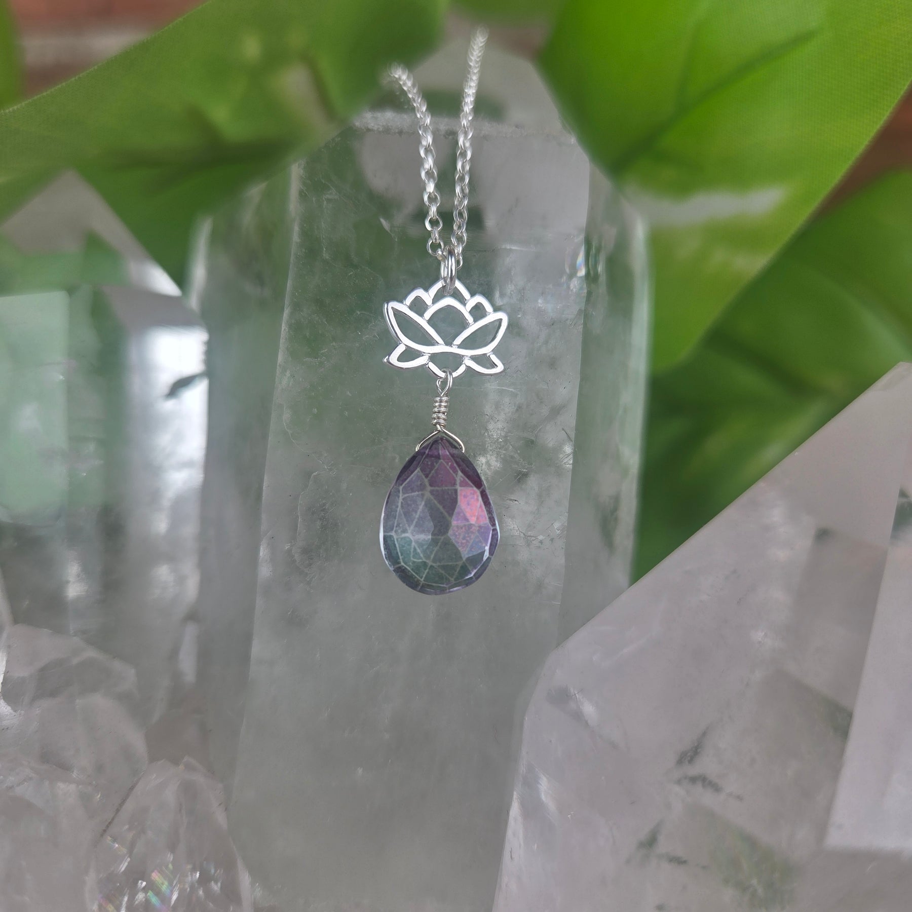 Small Lotus Flower Necklace with Gemstone Briolette is an artisan-made piece designed with simplicity, meaning, and everyday wear in mind. Featuring a delicate lotus charm paired with a shimmering gemstone briolette, each variation offers its own subtle color and character. Available in both sterling silver and gold fill, this necklace is finished with coordinating chain, clasp, and findings for a cohesive, refined look.