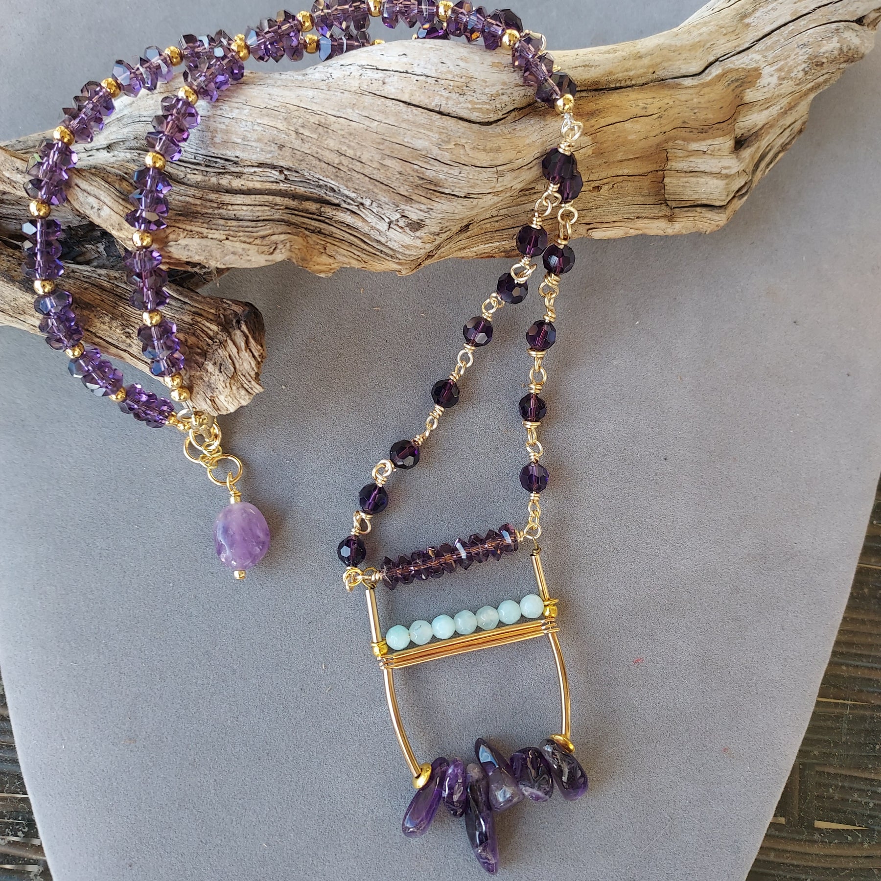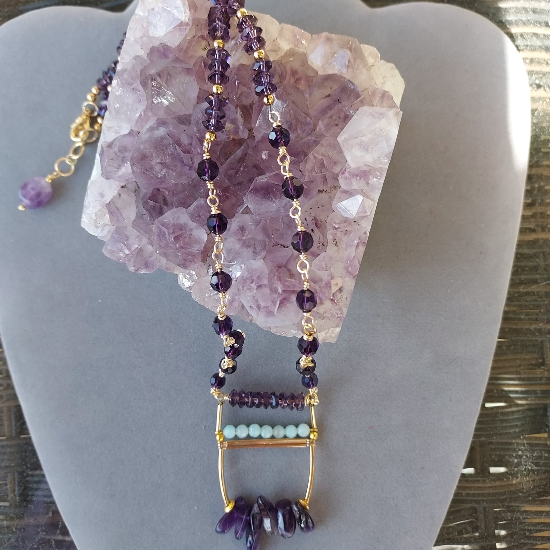 "Stone of Wisdom & Peace" Long Amethyst & Crystal Necklace – Artisan Made
