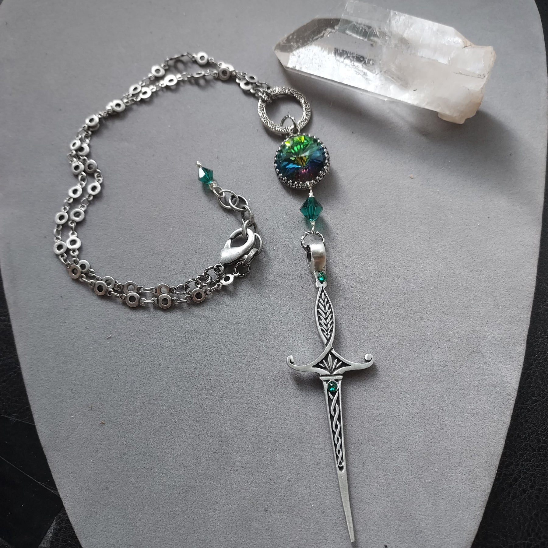 "Sword of Tara" Celtic/Viking Sword & Crystal Necklace – Artisan Made